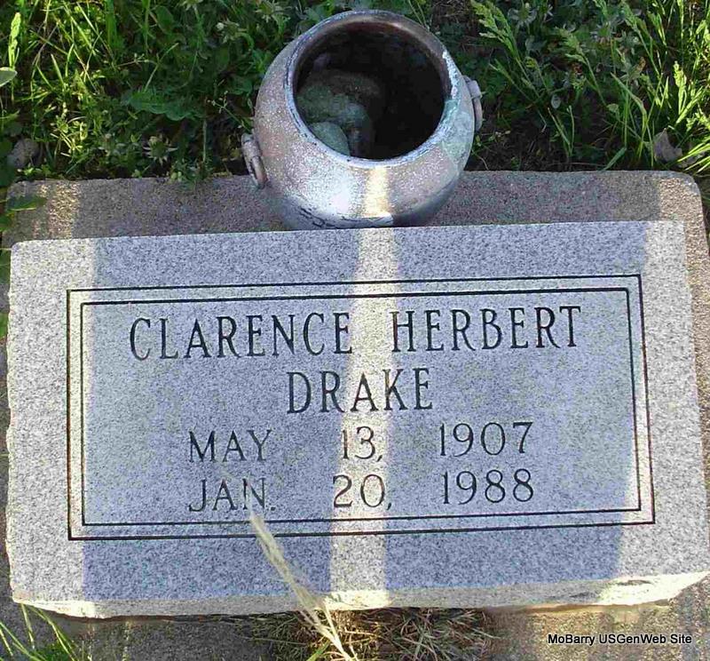 | DRAKE, Clarence Herbert | May 13, 1907 | Jan. 20, 1988 | Research Note: He was a son of Clarence C. and Lula M. (Dummit) Drake - Another Photo | Photo Family Data Wilma Fields Photo Donna Cooper |