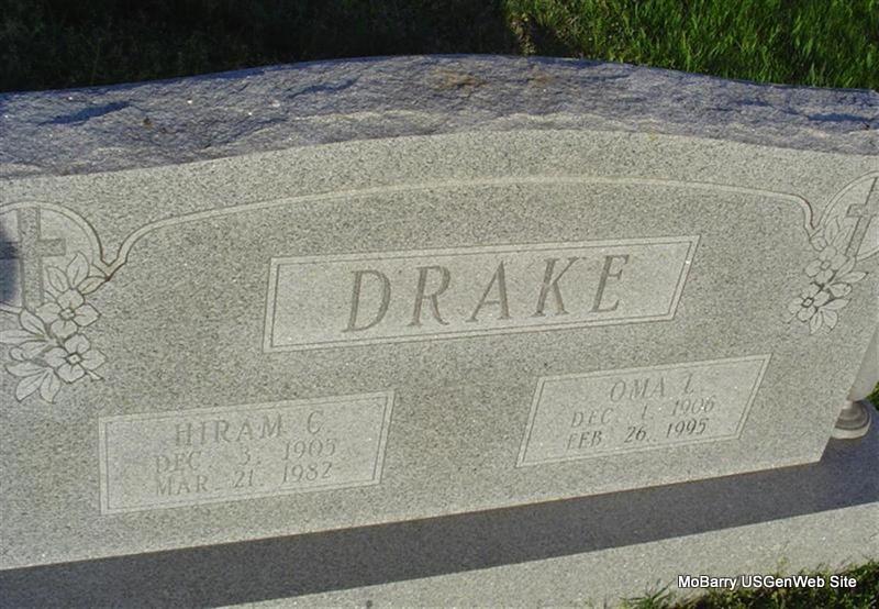 | DRAKE, Hiram C. | Dec. 3, 1905 | Mar. 21, 1982 | SSW: Oma L. - Research Note: Hiram C. Drake, 76, of Route 1, Monett, a lifetime Barry County resident, died at 9:06 p.m. yesterday in the Aurora Community Hospital. Son of Clarence C. Drake and Lula M. Dummit. Mr. Drake was born December 3, 1905, in Barry County and was a farmer before retiring in 1965. He was a member of the New Liberty Church. Survivors include three daughters, Mrs. James Callan, Mrs. Vedas Davis, and Mrs. James Thomas, all of Monett; one son, Gaylord (Sonny) Drake of Monett; two brothers, Herbert Drake and Fleman Drake, both of Monett; one sister; Mrs. Leona Wormington of Monett; seven grandchildren and two great-grandchildren. Funeral services will be held at 2 p.m. tomorrow in the Buchanan Chapel in Monett. Burial will be in the Kings Prairie Cemetery under the direction of the Buchanan Funeral Home. A memorial has been established to the Heart Fund. The family will receive friends from 7 to 9 p.m. today at the funeral home. - Cassville Republican, Nov. 9, 1939 - Mr. and Mrs. Hiram Drake of Monett visited her sister, Mrs. Murl Creason, Sunday evening. | Obit Wilma Fields Online Newspapers Phyllis Long Photo Donna Cooper |