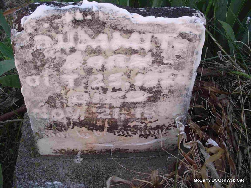 | DUMMIT, Hiram C. | Oct. 8, 1883 | Mar. 12, 1884 | Inscription: "Son of R. and M." | Photo Donna Cooper |