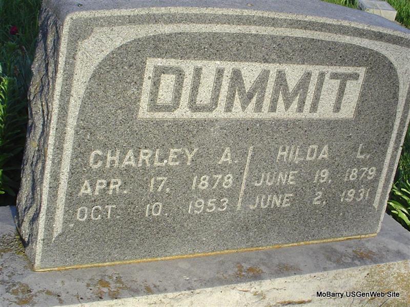 SSW: Hilda - Research Note: Charles, was a son of Hiram C. and Tranquiller (Bolen) Dummit. His first wife, Hilda, was the daughter of Fred L. and Clara Josephine (Carlson) Hultgren. - Parents not named on the death certificate. His wife was Sarah L. and she was the informant. Usual address was 2510 N. Grant, Springfield, MO. He was a retired machinist for the Frisco RR. - Oct. 12, 1953, Springfield, Missouri - Leader Press - Charles A. Dummit, 74, died at his home, 2510 North Grant, 10:30 p.m. Saturday, after a long illness. Mr. Dummit, a retired Frisco machinist, was a member of the Methodist Church. He came to Springfield from Monett 30 years ago. Survivors include his wife, Sarah; two sons, Arthur, 2405 Bolivar Road, and Lloyd, Aurora; four daughters, Mrs. Ida Reddington and Mrs. Myrtle Carter, both of Tulsa. Mrs. Norma Reaves, Kansas City and Mrs. Noma Alsup, Independence; a sister, Mrs. C. C. Drake, Monett, and 17 grandchildren. Services will be at 2 p.m. Tuesday at New Liberty Church south of Monett with the Rev. E. R. Stribling officiating. Burial will be in King's Prairie cemetery under direction of Thieme and Son. - Unknown Newspaper, 1914 - Friday evening, April 17, 1914, there gathered at the home of Mr. and Mrs. C. A. Dummit on Kings Prairie quite a number of relatives and friends to celebrate the former's 36th birthday anniversary. Refreshments were served by Mrs. Dummit and the occasion was pleasantly spent. The evening was spent in vocal and instrumental music and social enjoyment. An appropriate talk was made by Rev. Malmquist, followed with Bible reading and prayer. Those present from Globe were: Rev. and Mrs. Malmquist, Victor Schelin and family, Mr. and Mrs. E. W. Schelin, Theodore Erickson, Miss Mable Ackerson, Rev. and Mrs. Guy Carr of Monett, Fred Hultgren and family of Verona. Those from the Prairie were: Mr. And Mrs. T. H. Williams, D. W. Exposito and family, W. E. Dummit, Floyd Carter, Eldon Dummit, Jack Williams, Misses Margarete Williams, Elsie and Jessie Dummit, making 43 present. At a late hour all departed wishing Mr. Dummit many more happy birthdays. May God's richest blessings rest upon him and his family. - Another Photo | Obit Wilma Fields Death Certificate Online Newspapers Phyllis Long Photo Donna Cooper |