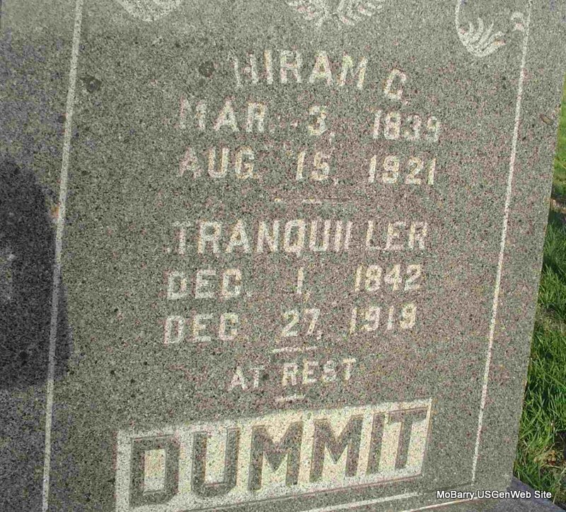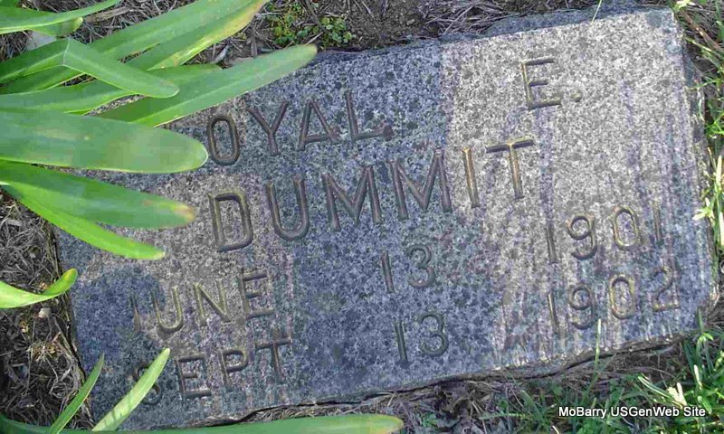 | DUMMIT | Oct. 25, 1880 | Nov. 21, 1886 | Research Note: Joan Viney says his name was Hiram. | Note Phyllis Long Photo Donna Cooper |
