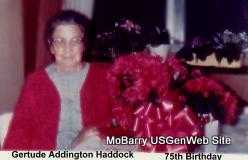 | HADDOCK, Gertrude Mae (ADDINGTON) | Apr. 9, 1892 Purdy, Barry Co., MO |