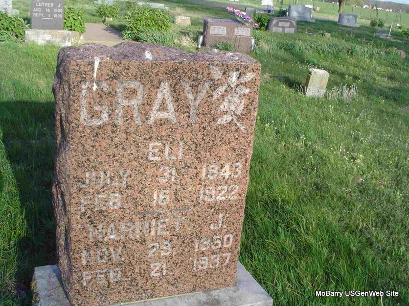 SSW: Harriett - Research Note: Date of Burial is listed as Feb. 18, 1922. His wife was Harriet Jane Clark; Children: Emma, Etta, William, Charles, James, Rachel, Johnathan, Ernest, Linnie. - Son of James B. Gray born PA and Lydia Perkins born VA. Mrs. Eli Gray was the informant on the death certificate. | Death Certificate Phyllis Long Civil War Record NARA Richard Gray Photo Donna Cooper |