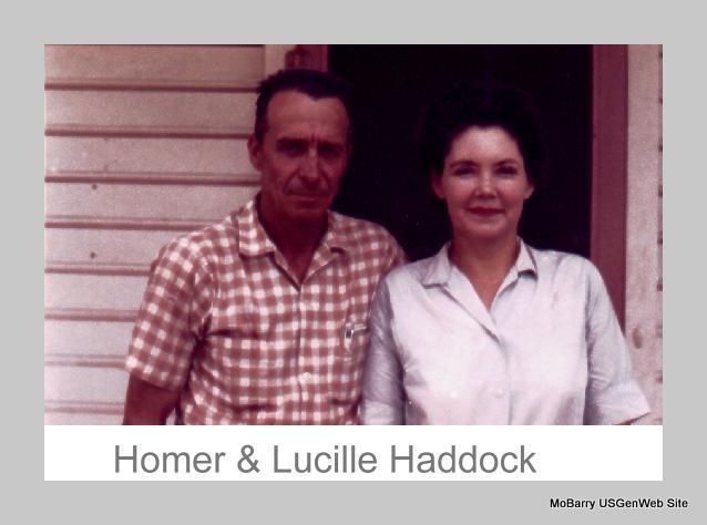 Research Note: His wife was Mary Lucille Smithson, buried at Maplewood, and she was the informant on the death certificate. Son of Samuel Sanders and Gertrude (Addington) Haddock. - Lucille's Obit - Photo of Homer and Lucille | Death Certificate Phyllis Long Note Photo Donna Cooper |