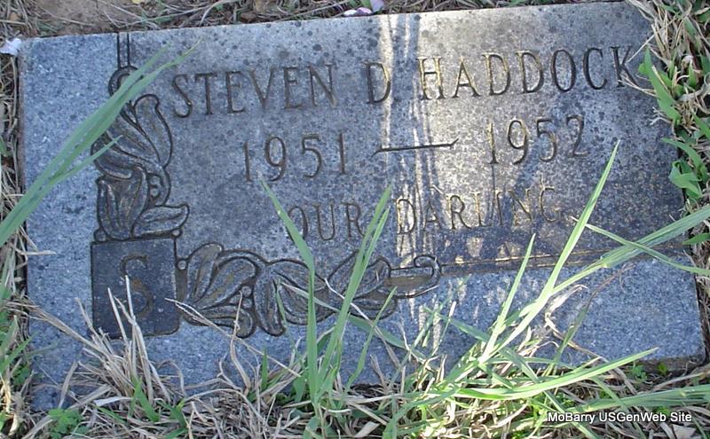 Inscription: "Our Darling" - Research Note: Son of Norman Sanders and Betty Lou (Johnson) Haddock. His father was the informant on the death certificate. | Death Certificate Phyllis Long Photo Donna Cooper |