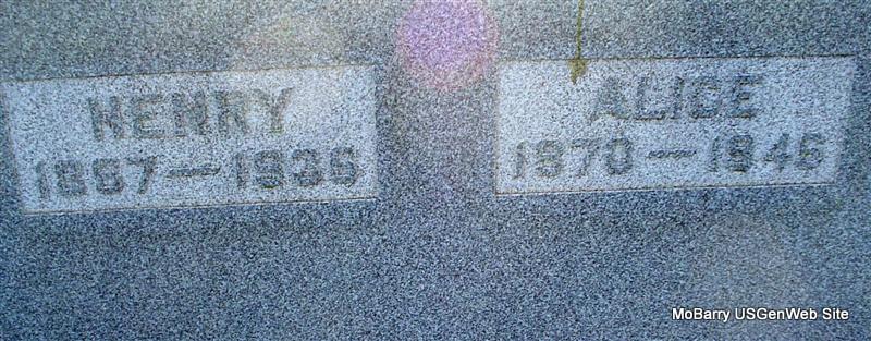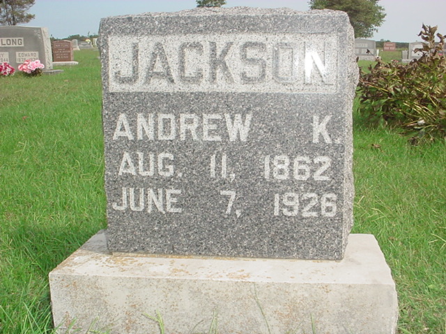 | JACKSON, James Henry | Oct. 3, 1867 | 1935 | SSW: Alice - Research Note: He was the son of Isaac K. Jackson and Martha J. Hammer. His wife was Alice Tate, daughter of John Douglas and Mary Elizabeth (Westfall) Tate. - Back of Stone | Census Phyllis Long Photo Donna Cooper |