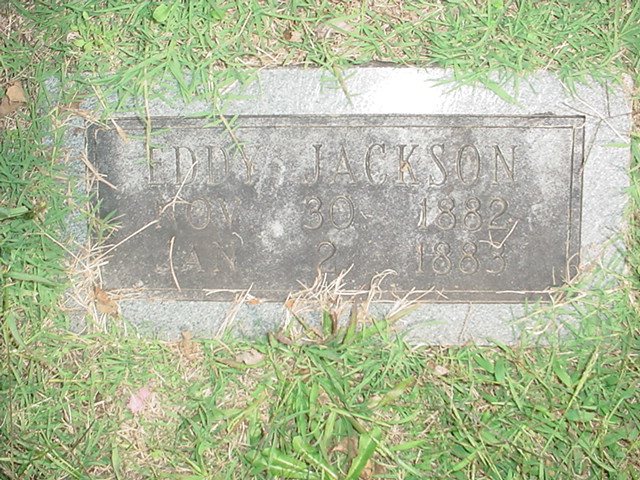 | JACKSON, Eddy | Nov. 30, 1882 | Jan. 2, 1883 | Research Note: Infant son of Thomas E. Jackson and Fountainella Bolen. - Another Photo | Note Phyllis Long Photo Wilma Fields Photo Donna Cooper |