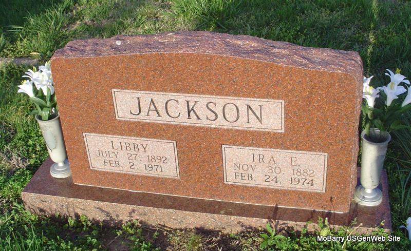 | JACKSON, Ira E. | Nov. 30, 1882 | Feb. 24, 1974 | SSW: Libby - Research Note: Son of Thomas Edgar Jackson and Fountain Bolen. | Census Phyllis Long Photo Donna Cooper |