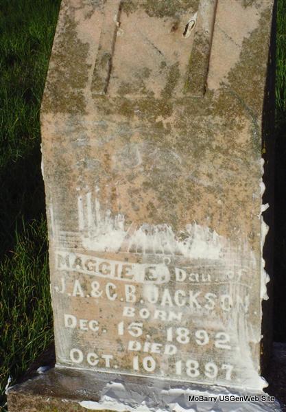 | JACKSON, Maggie Ethel | Dec. 15, 1892 | Oct. 10, 1897 Monett, MO |