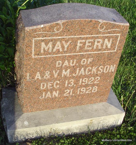 | JACKSON, Goldie Mae (LOWDER) | Mar. 2, 1884 Wheaton, Barry Co., MO |