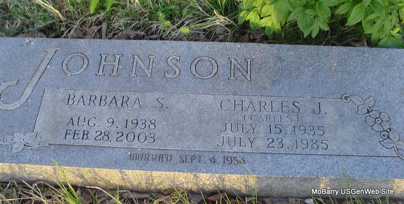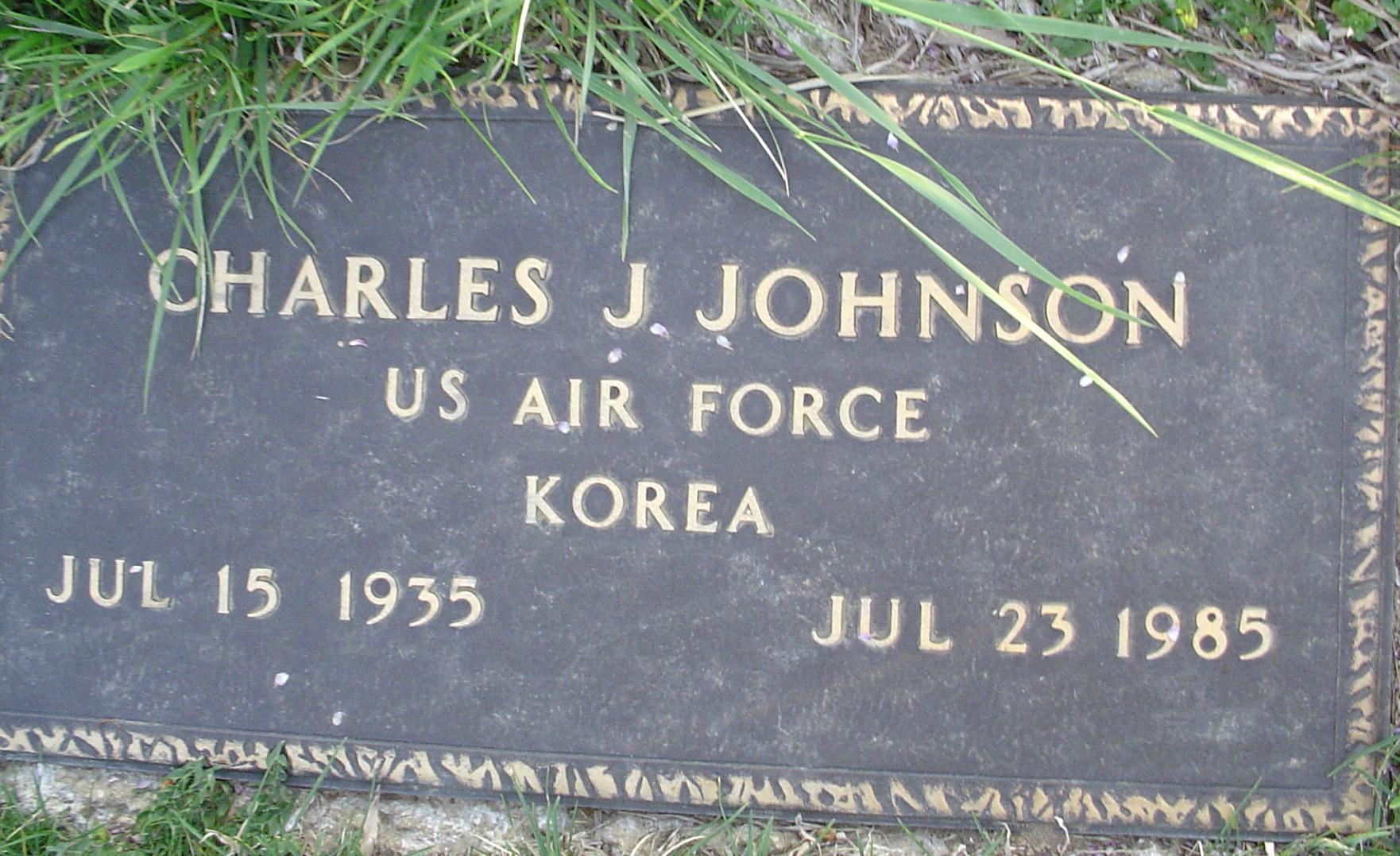 | JOHNSON, Charles J. "Carles" | July 15, 1935 | July 23, 1985 | SSW: Barbara S. - Inscription: "Married Sept. 4, 1954" - Research Note: Son of John Marion Johnson and Stella M. Swadley. - Military Stone - Inscription: "US AIR FORCE - KOREA" | Headstone Sue Eisenbarth SS Claims Index Phyllis Long Photo Donna Cooper |