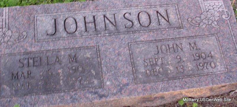 SSW: Stella M. - Research Note: Son of William T. Johnson and Georgia Ann Bohannan. He was retired from the Frisco RR. Charles Johnson of Joplin, MO was the informant on the death certificate. | Headstone Sue Eisenbarth Census Death Certificate Phyllis Long Photo Donna Cooper |