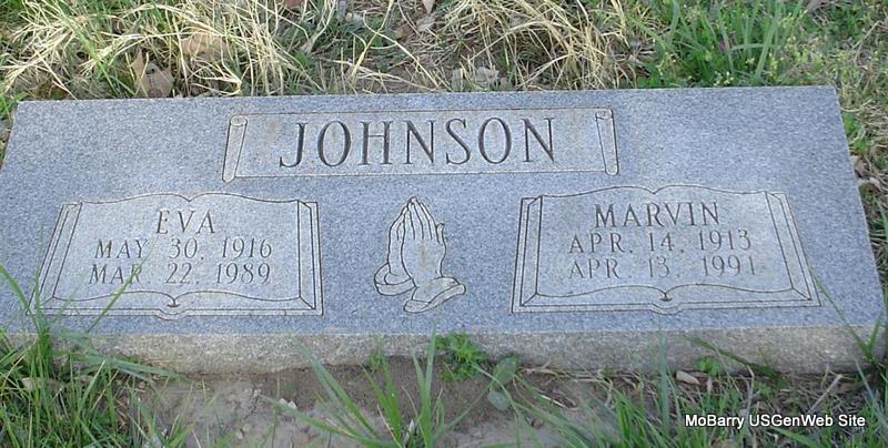 | JOHNSON, Marvin T. | Apr. 14, 1913 | Apr. 13, 1991 | SSW: Eva - Research Note: Son of Josiah "Joe" Johnson and Pearl Elizabeth Taylor. | Census Phyllis Long Photo Donna Cooper |