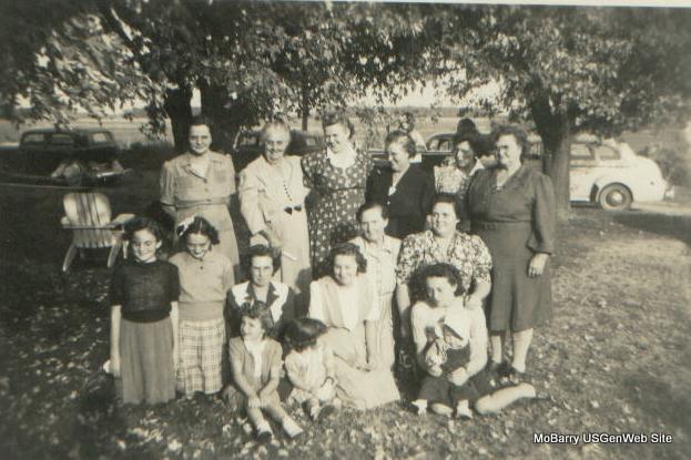 Back Row: Nellie (Long) Gillen, Carrie (Long) (Addington) Smith, unknown, unknown, unknown, unknown Front Row: Thelma Gillen?, Norma Shands?, -?-, -?-, 2 unknown girls?, maybe Rebecca Long?, Dove (Long) Shands & maybe Barbara Long? and baby? Woman on back row, second from left is my great-grandmother, Carrie (Long) (Addington) Smith. Research Note This might have been a picture taken after a funeral. Submitted in 2007 by Donna Cooper |