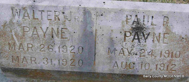 SSW: Walter Jr. - Research Note: According to the death certificate Paul Raymond Payne was a son of Walter Harrison and Bessie Susan (Anderson) Payne. Both parents were born in MO. W. H. Payne of Seligman, MO, gave the information. | Death Certificate Donna Cooper Photo Deceased Beverly Sweeney |