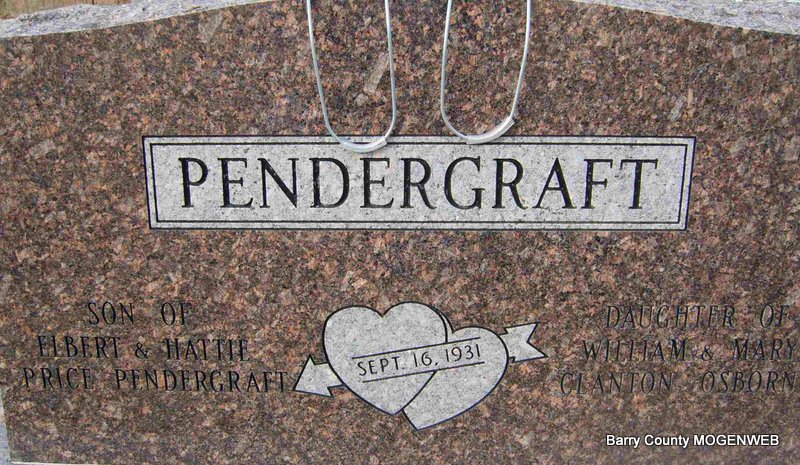 | PENDERGRAFT, Elbert Wallace | July 20, 1880 Seligman, Barry Co., MO |