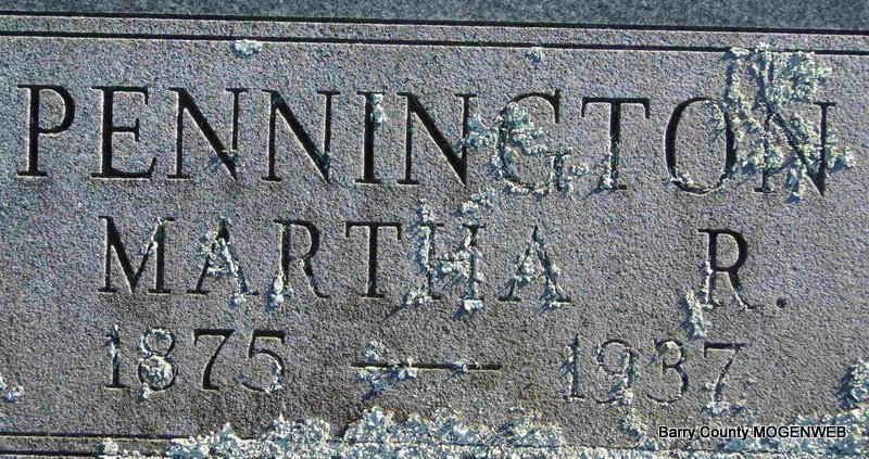 | PENNINGTON, Martha R. (McCOLLUM) | Mar. 21, 1875 Seligman, Barry Co., MO |
