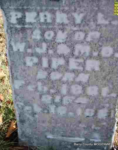 | PIPER, Perry L. | Feb. 1881 | Feb. 19, 1881 | Inscription: "Son of W. J. and M. O. Piper" | Photo Deceased Beverly Sweeney |
