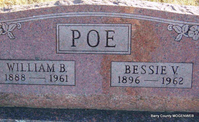 SSW: Bessie V. - Research Note: Son of Allen Poe and Harriet Craig. Bessie was his wife and she was the informant on the death certificate. - January 14, 1915, Thursday, Cassville Republican - New Salem News: Will Poe, who had occupied part of Sam Fountain's residence has purchased a tent and has moved near the sawmill. - January 28, 1915, Thursday, Cassville Republican - New Salem News: Will Poe has sold his tent and interest in his saw mill to his father and will move on Mat Lawson's farm. His father will move here to help with the mill. | Death Certificate Online Newspapers Phyllis Long Photo Deceased Beverly Sweeney |