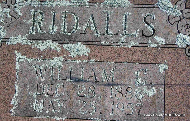 | RIDALLS, William C. | Dec. 28, 1886 | May 25, 1957 | No Data | Photo Deceased Beverly Sweeney |