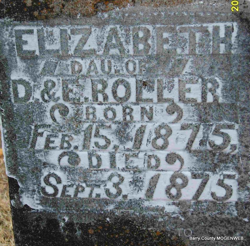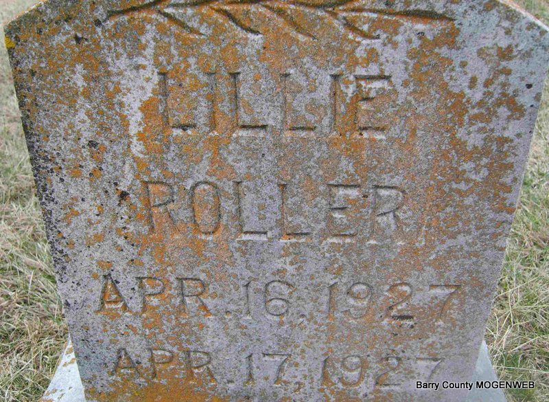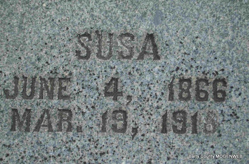 | ROLLER, Susan "Susa" (ROLLER) | June 4, 1866 Rural Seligman, Barry Co., MO |