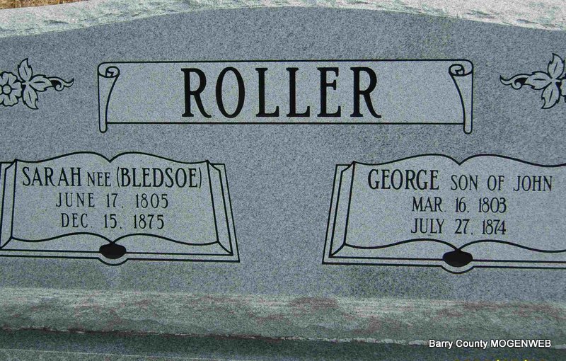 | ROLLER, Sarah S. (BLEDSOE) | June 17, 1805 | Dec. 15, 1875 Seligman, Barry Co., MO |