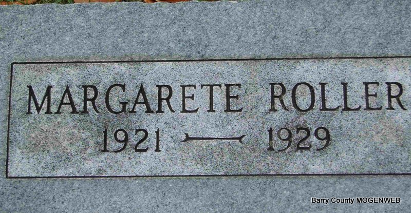 | ROLLER, Margaret Elizabeth (MURRAY) | May 17, 1872 Seligman,Barry Co., MO |