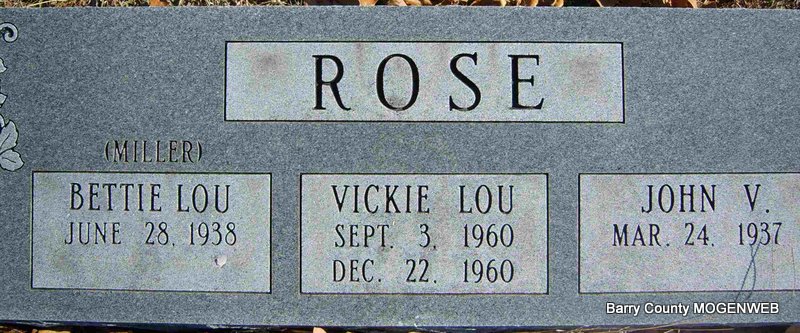 | ROSE, Vickie Lou | Sept. 3, 1960 Cassville, Barry Co., MO |