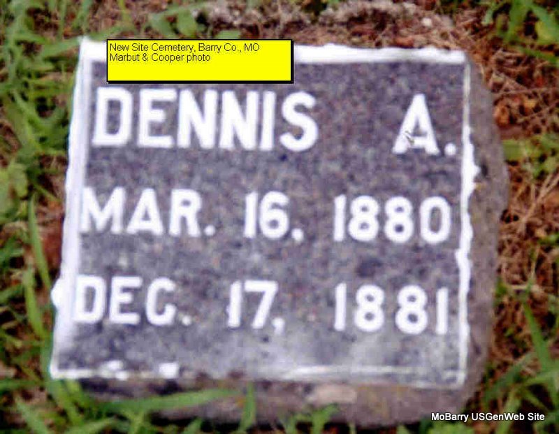 | ABERNATHY, Dennis A. | Mar. 16, 1880 | Dec. 18, 1881 | Research Note: Son of Blackstone Turner Abernathy born MO and Annis Russell born KS. | Census Photo Donna Cooper Darla Marbut |