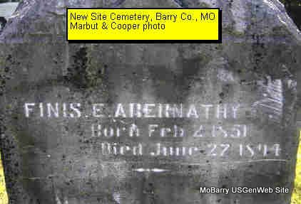 | ABERNATHY, Finis E. | Feb. 2, 1851 | Jan. 27, 1894 Barry Co., MO |