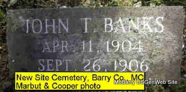 | BANKS, John T. | Apr. 11, 1904 | Sept. 26, 1906 | No Data | Photo Donna Cooper Darla Marbut |