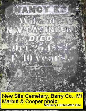 | BASINGER, Nancy E. | Abt. 1842 | Oct. 25, 1882 Barry Co., MO |