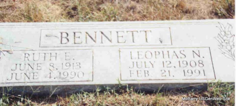 | BENNETT, Ruth E. | June 8, 1913 | June 4, 1990 | SSW: Leophas N. | Photo Donna Cooper Darla Marbut |