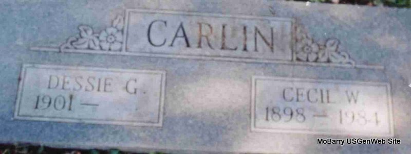 | CARLIN, Dessie Grace (RUSSELL) | Aug. 3, 1901 Purdy, Barry Co., MO |