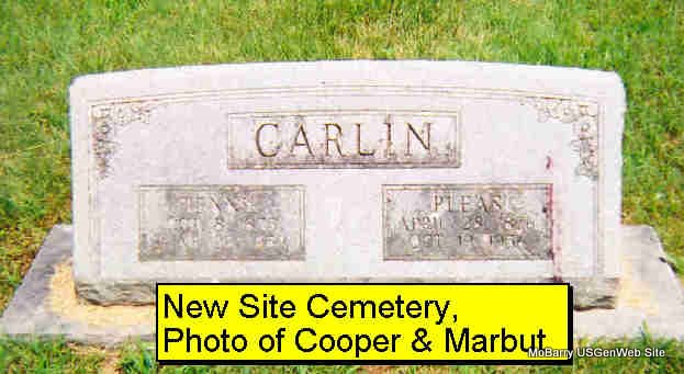 SSW: Tennie - Research Note: Son of William Marshall and Nancy (Haddock) Carlin. A. P. Carlin of Monett, MO was the informant on the death certificate. - March 4, 1915, Thursday, Cassville Republican - New Site News: Pleas Carlin has gone to repair the fence around his pasture in the hills preparatory to taking his stock there for the summer. - Cassville Republican, Thursday, May 9, 1918 - Miss Jewel Carlin visited Pleas Carlin's of New Site Friday and Saturday. | Death Certificate Online Newspapers Phyllis Long Note Photo Donna Cooper Darla Marbut |