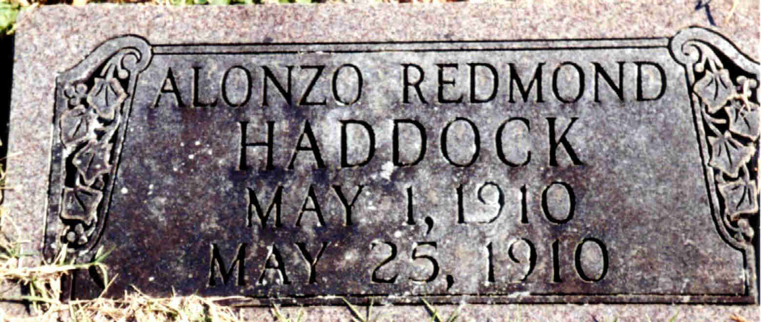 | HADDOCK, Alonzo Redmond | May 1, 1910 | May 25, 1910 | Research Note: Son of Charles Saunders Haddock, Sr. and Hattie Bell Wormington. | Note Photo Donna Cooper Darla Marbut |