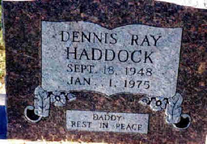 Jan. 1, 1975 | Research Note: He was a son of Samuel Virgil and Frona Joy (Carlin) Haddock. Dennis was married to Debra Boedecker. He was a descendant of both Charles Haddock, Sr. and Zachariah Haddock. | Note Photo Donna Cooper Darla Marbut |