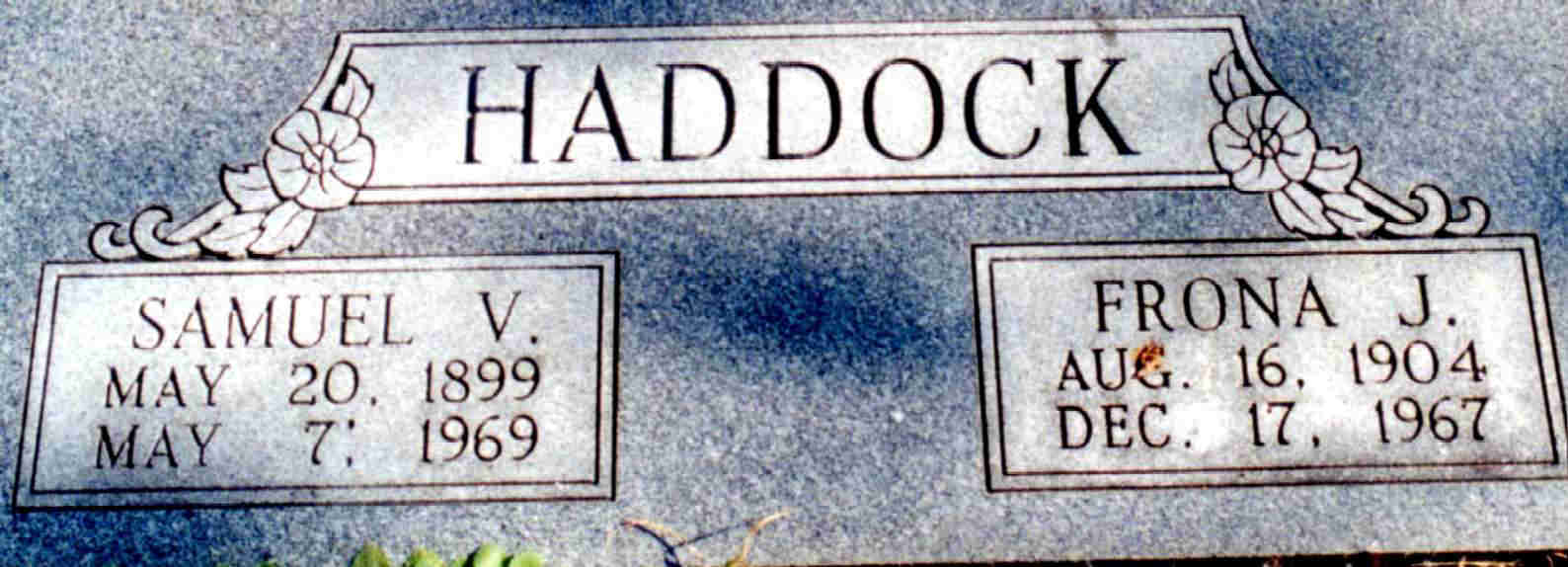 | HADDOCK, Frona Joy (CARLIN) | Aug. 16, 1904 | Dec. 17, 1967 | SSW: Samuel Virgil - Research Note: Wife of Samuel Virgil Haddock. Daughter of Pleasant Vernon Carlin and Charlotte Tennessee Russell. She was a descendant of Zachariah Haddock through the Russell family and also of Charles Haddock through the Carlin family. Samuel Virgil Haddock was the son of Samuel Sanders Haddock and his first wife Eva Wood. He was a descendant of Charles Haddock, Jr. | Death Certificate Phyllis Long Note Photo Donna Cooper Darla Marbut |
