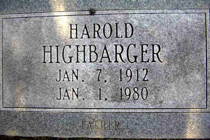| HIGHBARGER, Harold | Jan. 7, 1912 | Jan. 1, 1980 | Research Note: Son of Lindsay Highbarger and Myrtle Hankins. His wife was Geneva (Wormington) (HIGHBARGER) Wickeren, buried at New Site Cemetery next to Harold but listed under Wickeren. She was the daughter of Asa Wormington and Cora Gurley. - Photo of Geneva's Stone | Note Census Phyllis Long Photo Donna Cooper Darla Marbut |