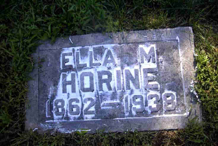 Inscription: "Son of H. S. and E. M. Horine" - Research Note: Son of Hiram S. Horine and Ella M. Hendershot. | Note Phyllis Long Photo Donna Cooper Darla Marbut |