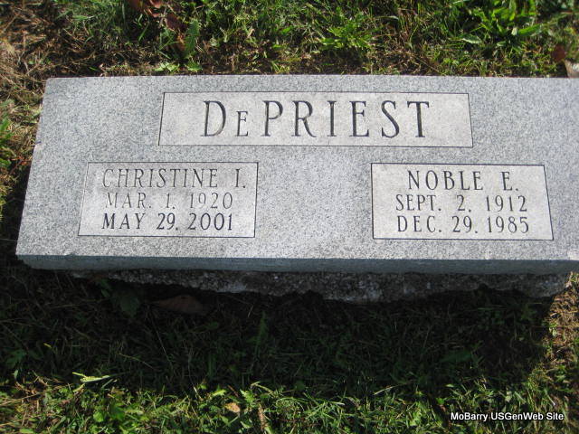 | DEPRIEST, Noble E. | Sept. 2, 1912 | Dec. 29, 1985 | SSW: Christine I. - Research Note: Son of John Harrison DePriest and Della Viola (Baker) (DePriest) Hagedorn. | Census Phyllis Long Monett Historical Society Photo |