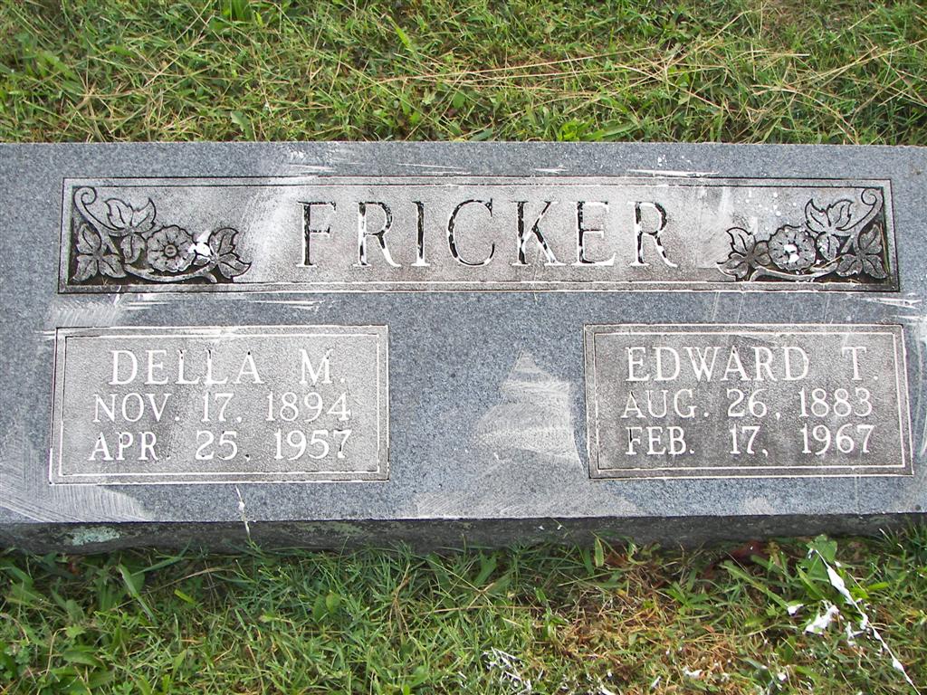 | FRICKER, Edward T. | Aug. 26, 1883 | Feb. 17, 1967 | SSW: Della M. - According to the Monett Cemetery records, Edward, Della, Vernon, and Virginia Fricker are all buried in the same Lot in graves 1, 2, 3,and 4. | Monett Historical Society Photo |