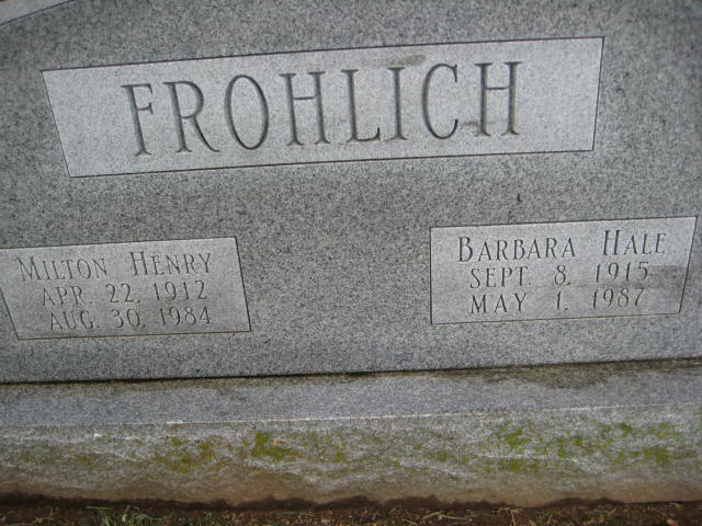 | FROHLICH, Barbara (HALE) | Sept. 8, 1915 | May 1, 1987 | SSW: Milton Henry | Monett Historical Society Photo |