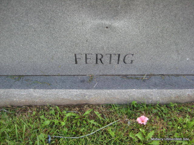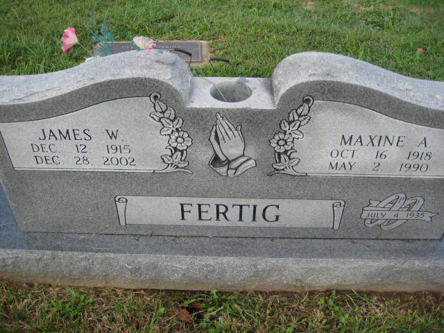 SSW: Maxine A. - Inscription: Married "July 4, 1935" - Back of Stone - Research Note: He was the son of James A. and Meta (Frey) Fertig. He was owner/operator of Brown and Fertig Construction Company for many years. He was an Army veteran of World War II. He married Maxine Alice Brown on July 4, 1935, in Edna, Kansas, and she preceded him in death May 2, 1990. | Monett Cemetery Records Monett Times Dec. 30, 2002 Phyllis Long Monett Historical Society Photo |
