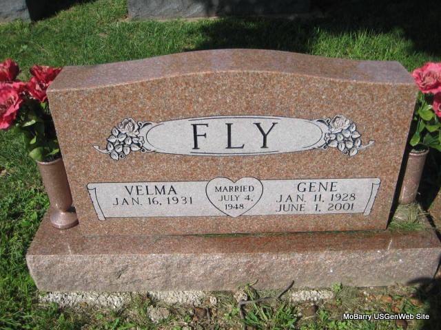 SSW: Velma - Inscription: "Married July 4, 1948" - Back of Stone Inscription: "Parents of Sherryl" - Research Note: He was the son of Herschel Benton and Hila Rebecca (Stockton) Fly. A retired auto mechanic, he owned the G and R Sinclair Service Station in Monett, and was the former manager of the Cooper Skelly Station, also in Monett. He married Velma Smith on July 4, 1948. | Monett Times June 4, 2001 Phyllis Long Monett Historical Society Photo |
