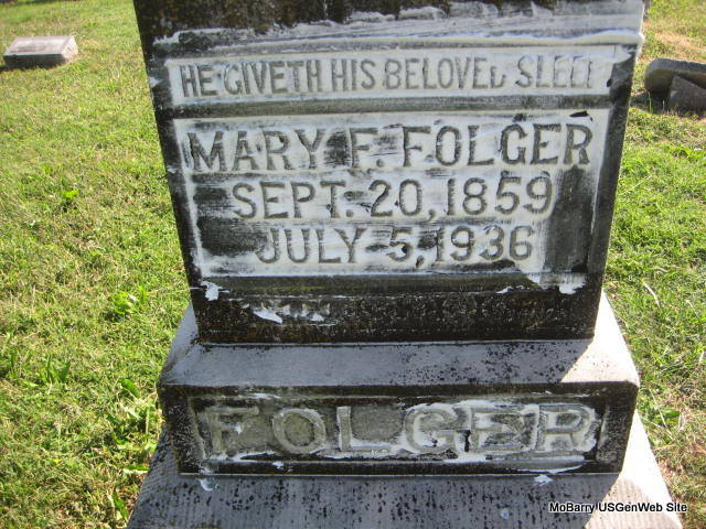 | FOLGER, Mary Frances (STOUT) | Sept. 20, 1859 Lincoln Co., OH |