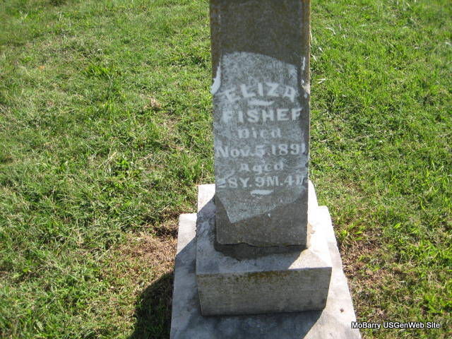 | FISHER, Eliza | Abt. 1863 | Nov. 5, 1891 | Inscription: "Aged 28Y - 9M - 4D" | Monett Historical Society Photo |