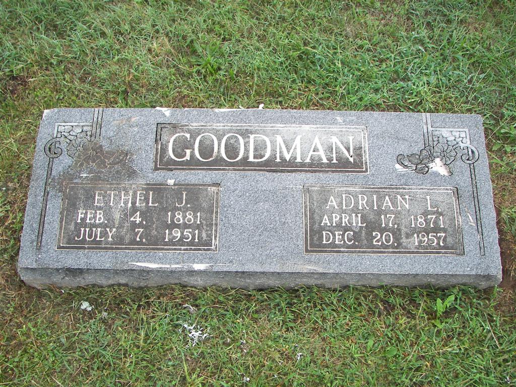 SSW: Ethel J. - Research Note: Death certificate indexed as Adrain. Death date given as Dec. 18. He was a farmer and widowed twice. His parents were Jabez Goodman and Rebecca Brown. Leroy Goodman of Monett, MO was the informant. | Death Certificate Phyllis Long Monett Historical Society Photo |