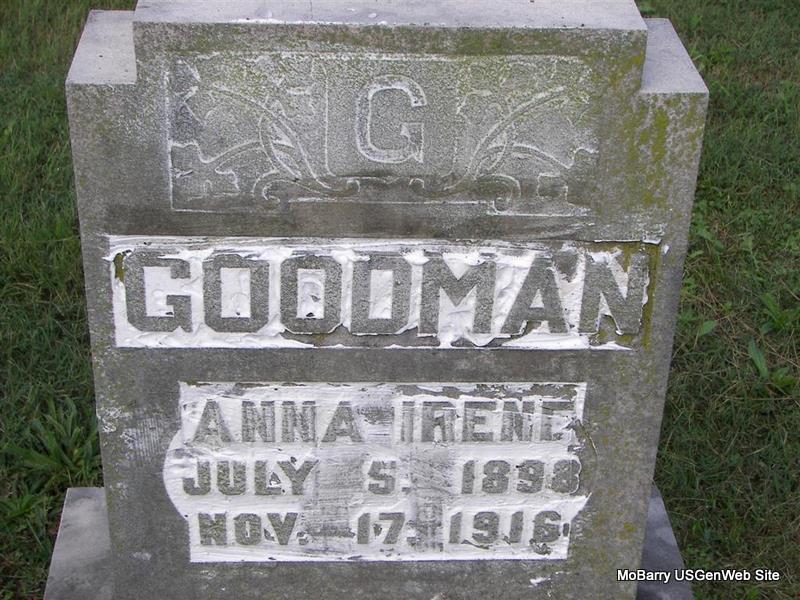| GOODMAN, Anna Irene | July 5, 1898 Pulaski Co., MO |