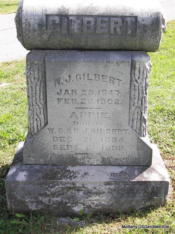 SSW: N. J. - Inscription: "Dau. of W. C. and N. J. Gilbert" - Research Note: Daughter of William Crawford Gilbert and Nancy Jane Wormington. - Father's Obit | Monett Historical Society Photo |